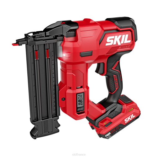 abandonnez les tuyaux et les compresseurs avec le kit de cloueuse sans fil Skil pwrcore 20 sans balais 20 V 18ga. cette cloueuse sans fil de 20 V offre la meilleure autonomie de sa catégorie en enfonçant jusqu’à 1 000 clous sur une seule charge avec la batterie de 2,0 Ah incluse. il est doté d’un puissant moteur sans balais qui enfonce jusqu’à deux clous par seconde avec un temps de montée en puissance minimal. Les deux lumières LED aident à augmenter la visibilité lorsque vous travaillez avec le pistolet à clous dans des zones de travail faiblement éclairées. sa molette de réglage rapide de la profondeur vous permet de régler facilement la profondeur de clouage idéale lors de l’enfoncement des fixations, et le pistolet à clous alimenté par batterie est compact et léger pour travailler dans des espaces restreints avec un minimum de fatigue. Choisissez entre les modes séquentiel et bump avec le commutateur de sélection de mode. Le verrouillage du feu à sec élimine le tir à blanc et évite d’endommager les surfaces de travail, tandis que le dégagement sans outil offre un accès facile aux clous transparents en cas de bourrage. la cloueuse de finition accepte les attaches de 5/8 pouces à 2-1/8 pouces de calibre 18.
