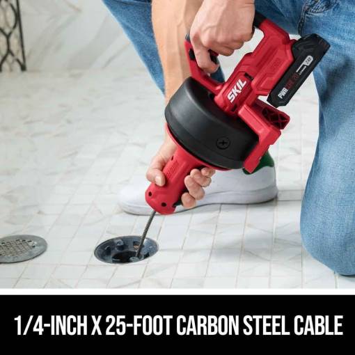 Éliminez les bouchons tenaces et gardez les canalisations de baignoire, de douche et d’évier coulant librement avec le nettoyeur de canalisations Skil Multivolt Power Snake. ce serpent électrique sans fil est doté d’un câble en acier au carbone de 25 pieds sur 25 pieds pour une portée étendue et une durabilité maximale autour des articulations des coudes et des courbes pour nettoyer les canalisations de 2 pouces à 2 pouces de diamètre. sa gâchette à vitesse variable offre un contrôle précis tandis que son câble d’alimentation automatique s’étend et se rétracte en appuyant sur un levier à palette. une base de pied offre un support solide pendant l’utilisation de la tarière de vidange, et un port de nettoyage draine l’excès d’eau après avoir dégagé un bouchon et rétracté le câble d’un tuyau d’évacuation. Doté de la technologie Skil multivolt, ce serpent de vidange est compatible soit avec les batteries Skil 12 V pour un outil compact et léger, soit avec les batteries Skil 20 V pour plus de puissance et une durée de fonctionnement plus longue. ce kit de déboucheur sans fil 20 V comprend une batterie au lithium pwrcore 20 2,0 Ah et un chargeur pwrcore 20 30 W.